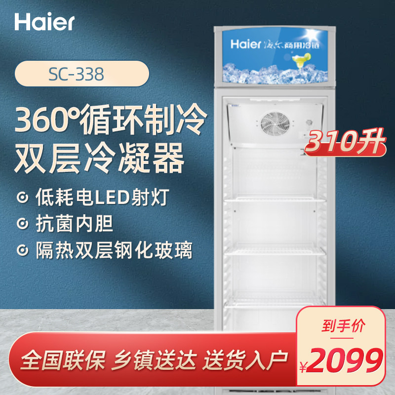 海尔冷柜SC-338 310升大容量立式商用冷藏保险柜超市展示柜风冷热门设计联盟服务商