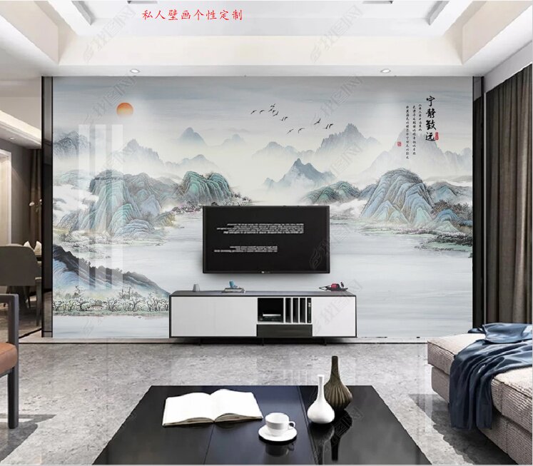 2021新款山水画电视背景墙壁画新中式8D客厅装饰壁纸影视墙纸墙布热门设计联盟服务商