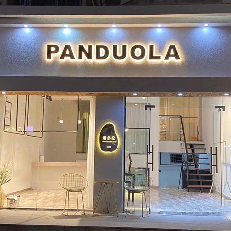 定做钛金不锈钢j拉丝包边户外门头点阵发光字镂空招牌灯箱广告定热门设计联盟服务商