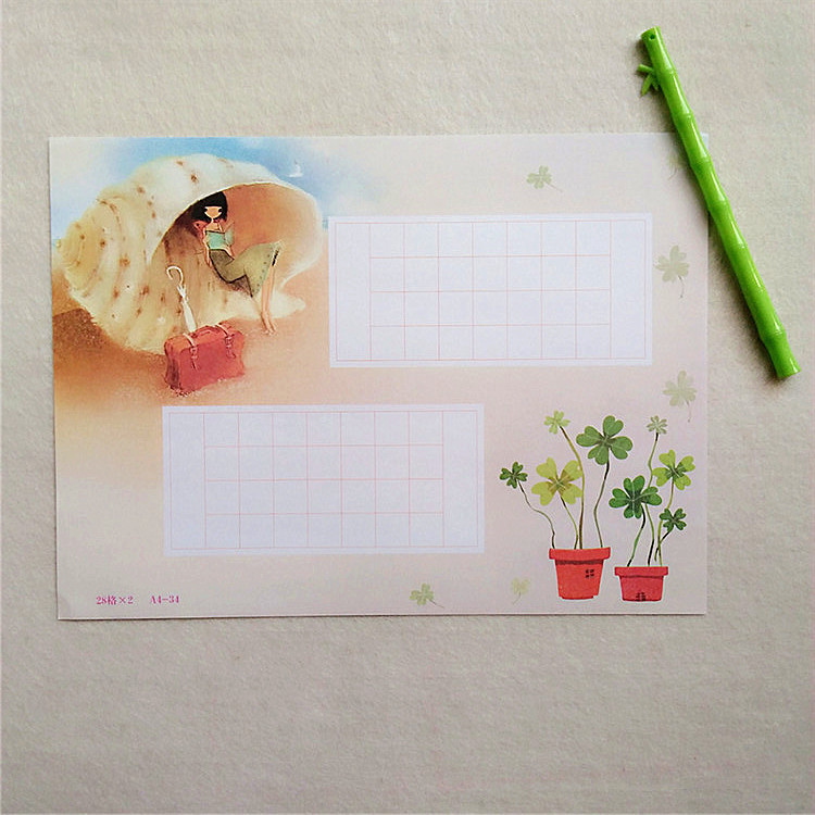 A4-34/贝壳女孩/学生硬笔钢笔书法展览七言诗练习专用方格纸16开热门设计联盟服务商
