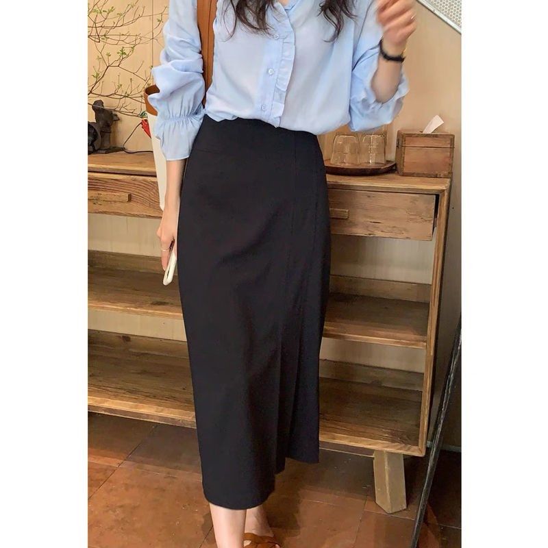设计款百褶西装裙子女黑色显瘦高腰半身裙夏季2021新款百搭中长裙热门设计联盟服务商
