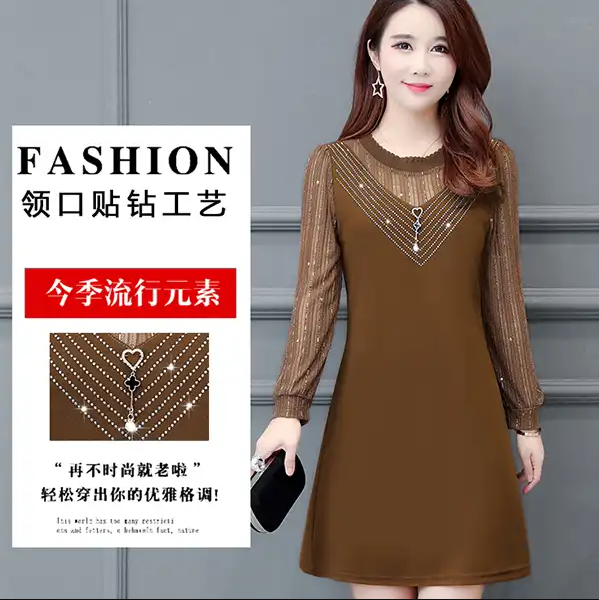 秋月服饰倾染连衣裙打底衫2019春秋新款女中长款优加精品抖音同款热门设计联盟服务商