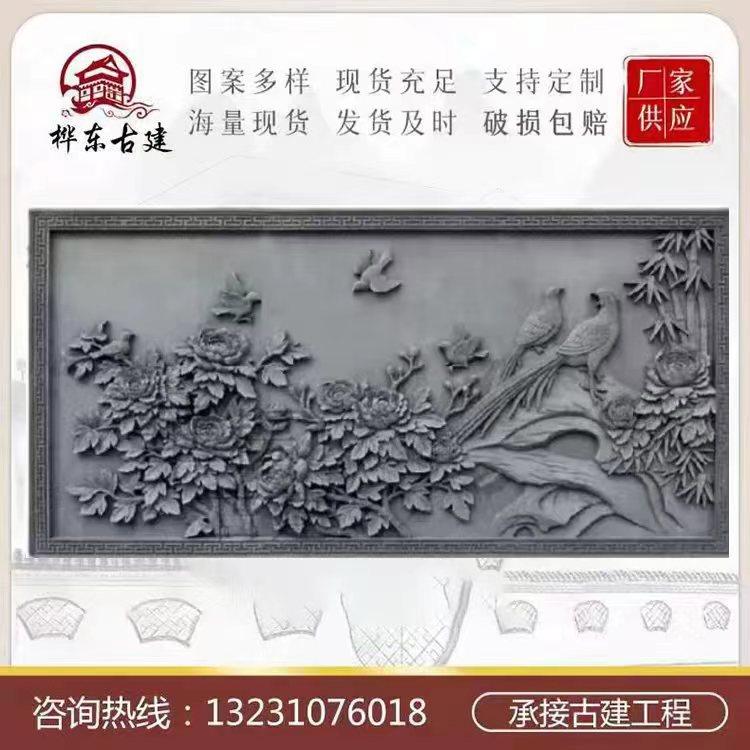 砖雕浮雕挂件 花开富贵仿古影壁照壁 古建背景墙装饰方形仿古砖雕热门设计联盟服务商